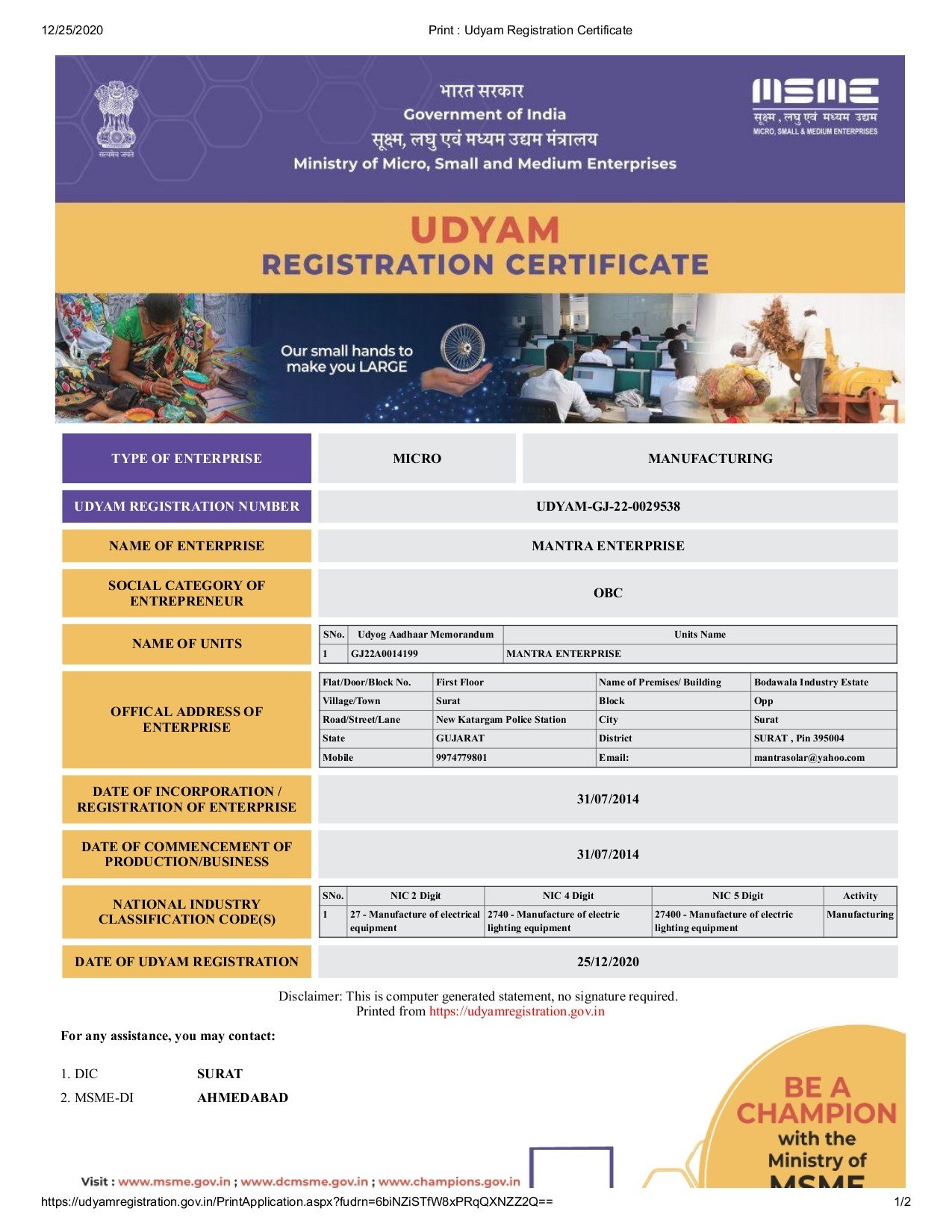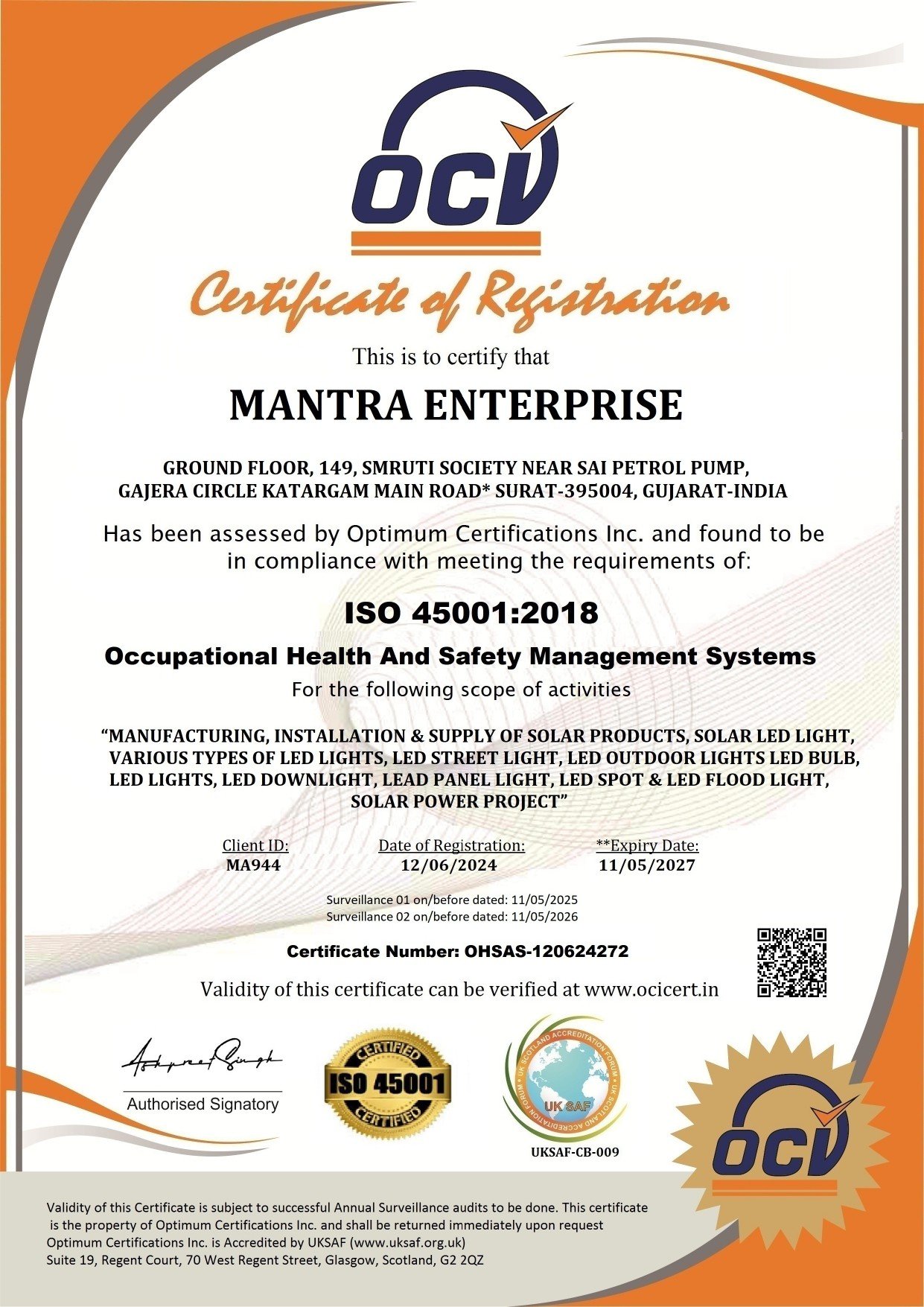 Introducing Mantra Enterprise, a leading manufacturer of solar products based in Surat, Gujarat, India. With our establishment in 2011, we have been dedicated to producing an extensive range of high-quality solar products including solar LED lights, solar home UPS, solar water pumps, solar home lighting systems, LED bulbs, LED lights, LED downlights, LED panel lights, LED spotlights, LED floodlights, and more. Our products are widely recognized in the market for their easy installation, low maintenance, and exceptional durability. Thanks to the visionary leadership of our CEO, Vikunj Prajapati, we have successfully met the diverse needs of our valued clients.